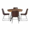 Our round mid century modern dining set is a perfect blend of style and functionality. The sleek round table and matching chairs with their mid-century design create a timeless and inviting dining experience for up to four people.